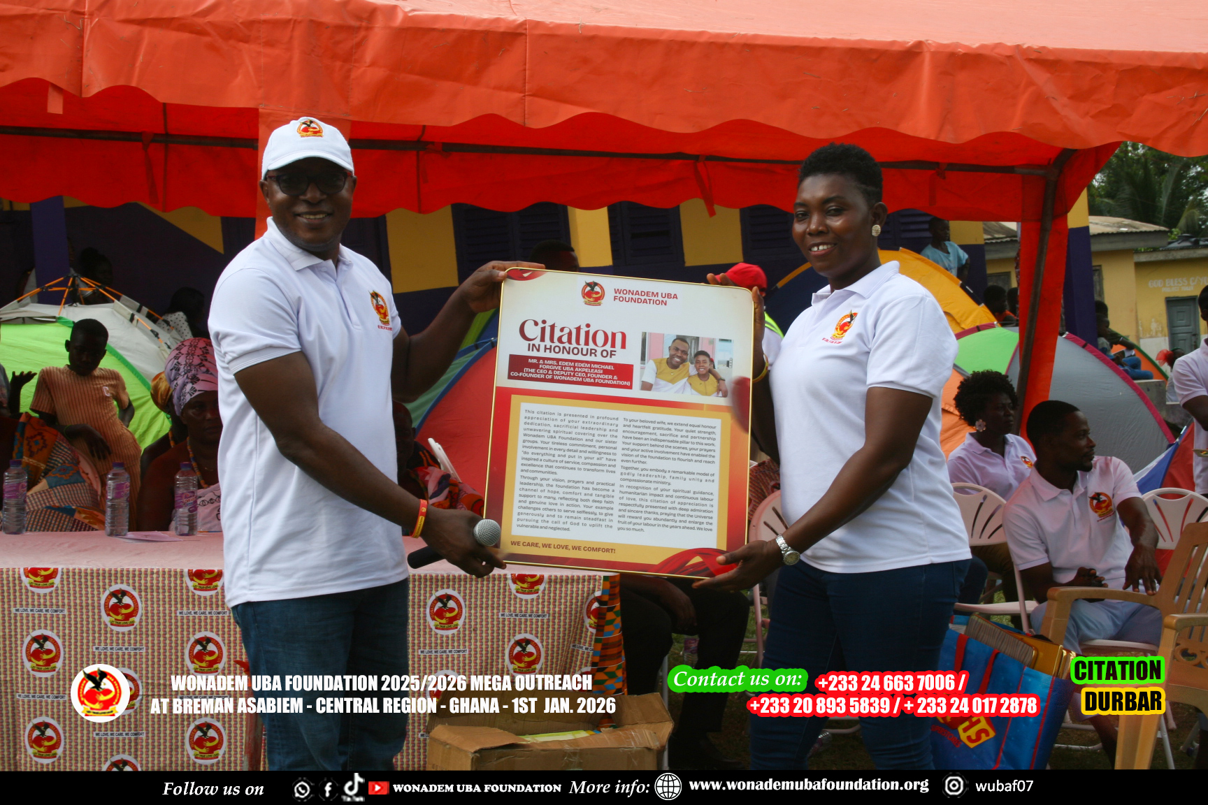 During the recent outreach organized by Wonadem UBA Foundation (WUBAF), the Foundation recognized and honored some of its dedicated members with citations and awards in appreciation of their selfless service, hard work, and unwavering commitment to the Foundationâs mission.