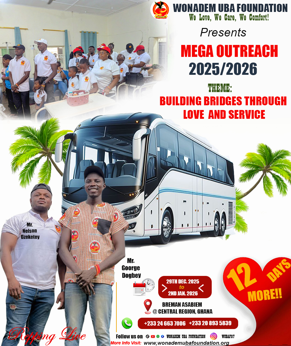 The Wonadem UBA Foundation is hosting an outreach program, "Building Bridges Through Love and Service," from Dec 29, 2025, to Jan 2, 2026, in Breman Asabiem, a rural community in Ghana's Central Region. The program aims to provide essential services, promote social cohesion, and demonstrate love and care through initiatives in education, healthcare, community development, and skill training.