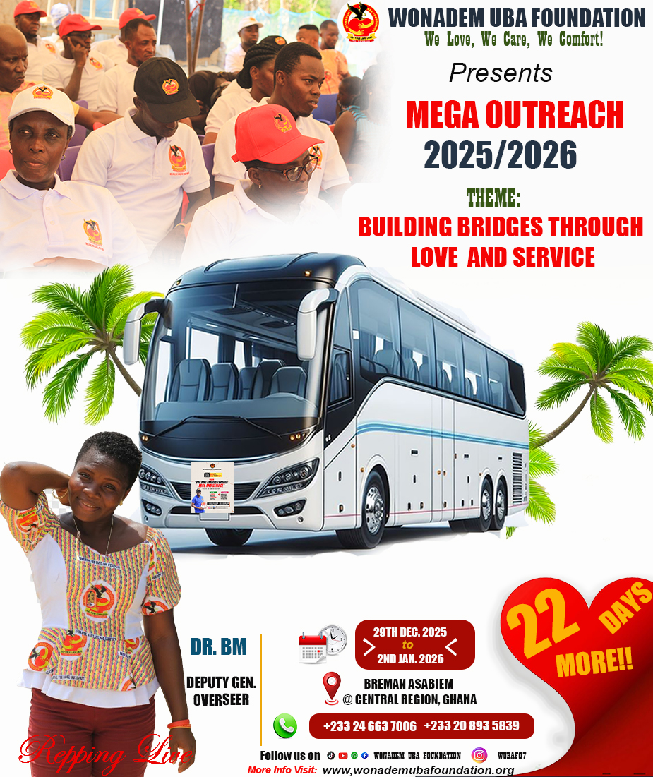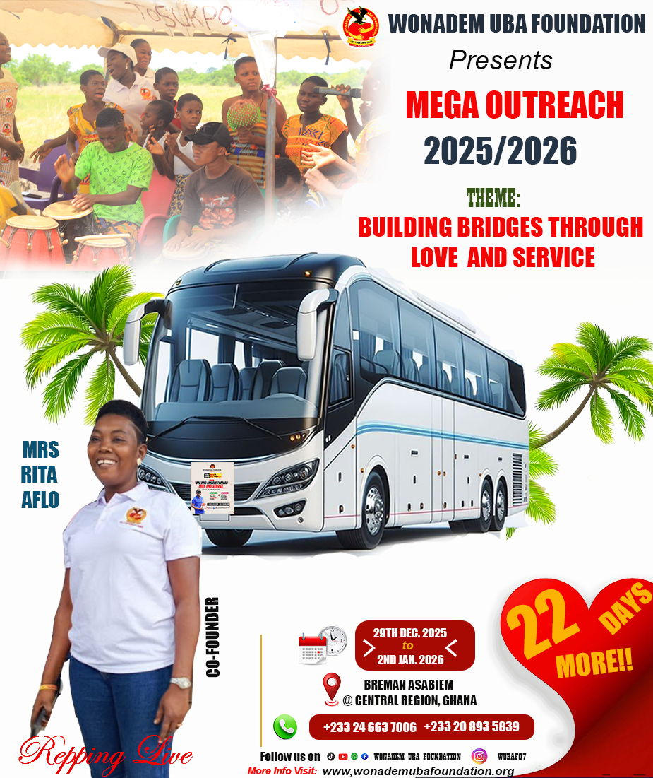 The Wonadem UBA Foundation is hosting an outreach program, "Building Bridges Through Love and Service," from Dec 29, 2025, to Jan 2, 2026, in Breman Asabiem, a rural community in Ghana's Central Region. The program aims to provide essential services, promote social cohesion, and demonstrate love and care through initiatives in education, healthcare, community development, and skill training.