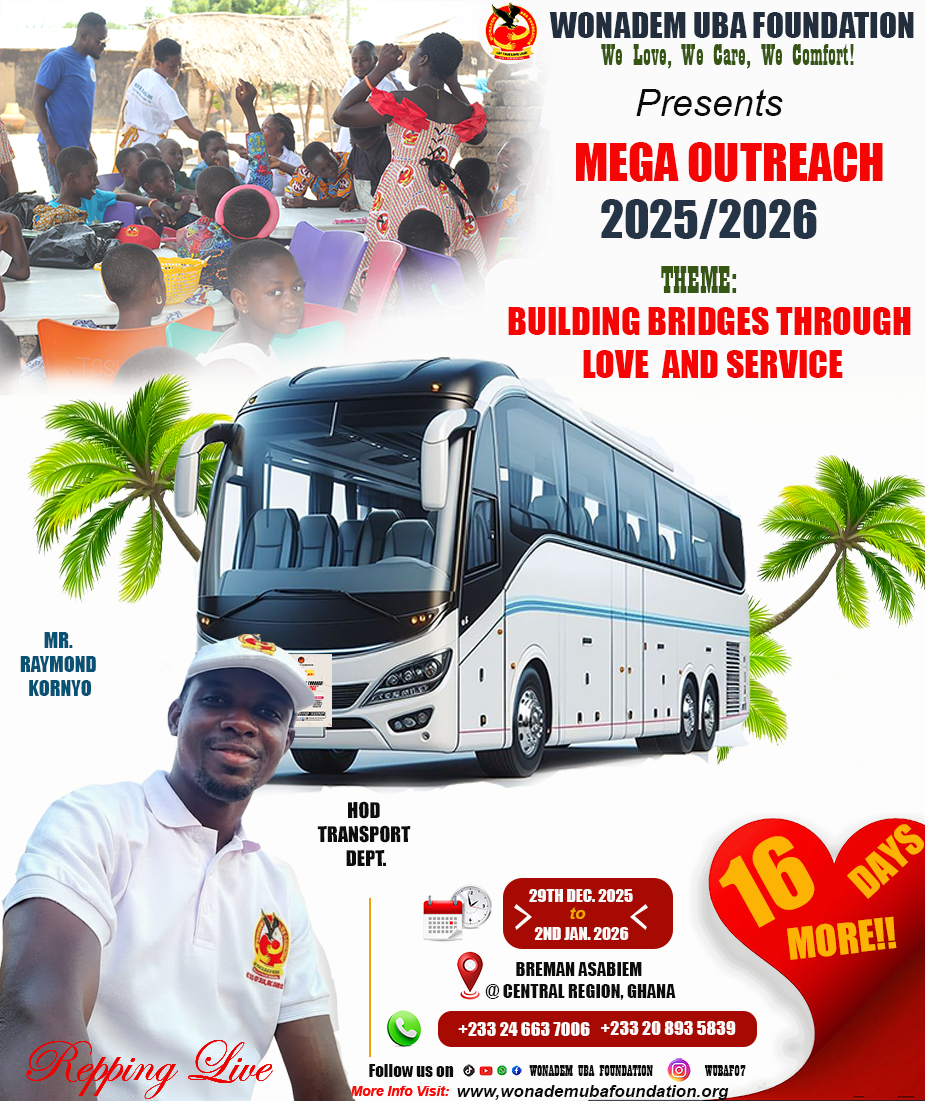 The Wonadem UBA Foundation is hosting an outreach program, "Building Bridges Through Love and Service," from Dec 29, 2025, to Jan 2, 2026, in Breman Asabiem, a rural community in Ghana's Central Region. The program aims to provide essential services, promote social cohesion, and demonstrate love and care through initiatives in education, healthcare, community development, and skill training.