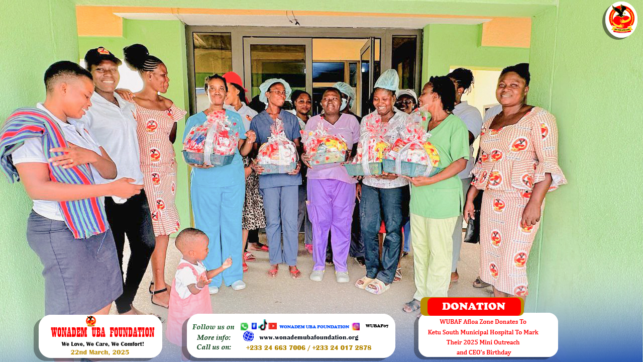 On March 22, 2025, Wonadem UBA Foundation (WUBAF) made a significant gesture of love, care, and comfort by donating to the Ketu South Municipal Hospital. This generous act not only highlighted the foundation's commitment to giving back to the community but also coincided with their mini outreach event and the CEO's birthday celebration, Mr. Edem Edem Michael Forgive UBA Akpeleasi popularly known as SIR UBA.