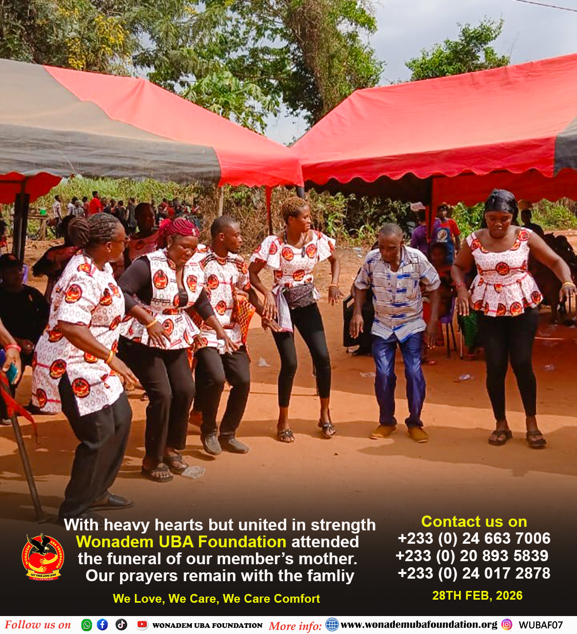 On February 28, 2026, Wonadem UBA Foundation (WUBAF) once again demonstrated that we are more than an organization — we are family. Members of the Foundation traveled from different zones across Ghana to Akuapem in the Eastern Region to attend the funeral of a beloved mother of one of our cherished members.