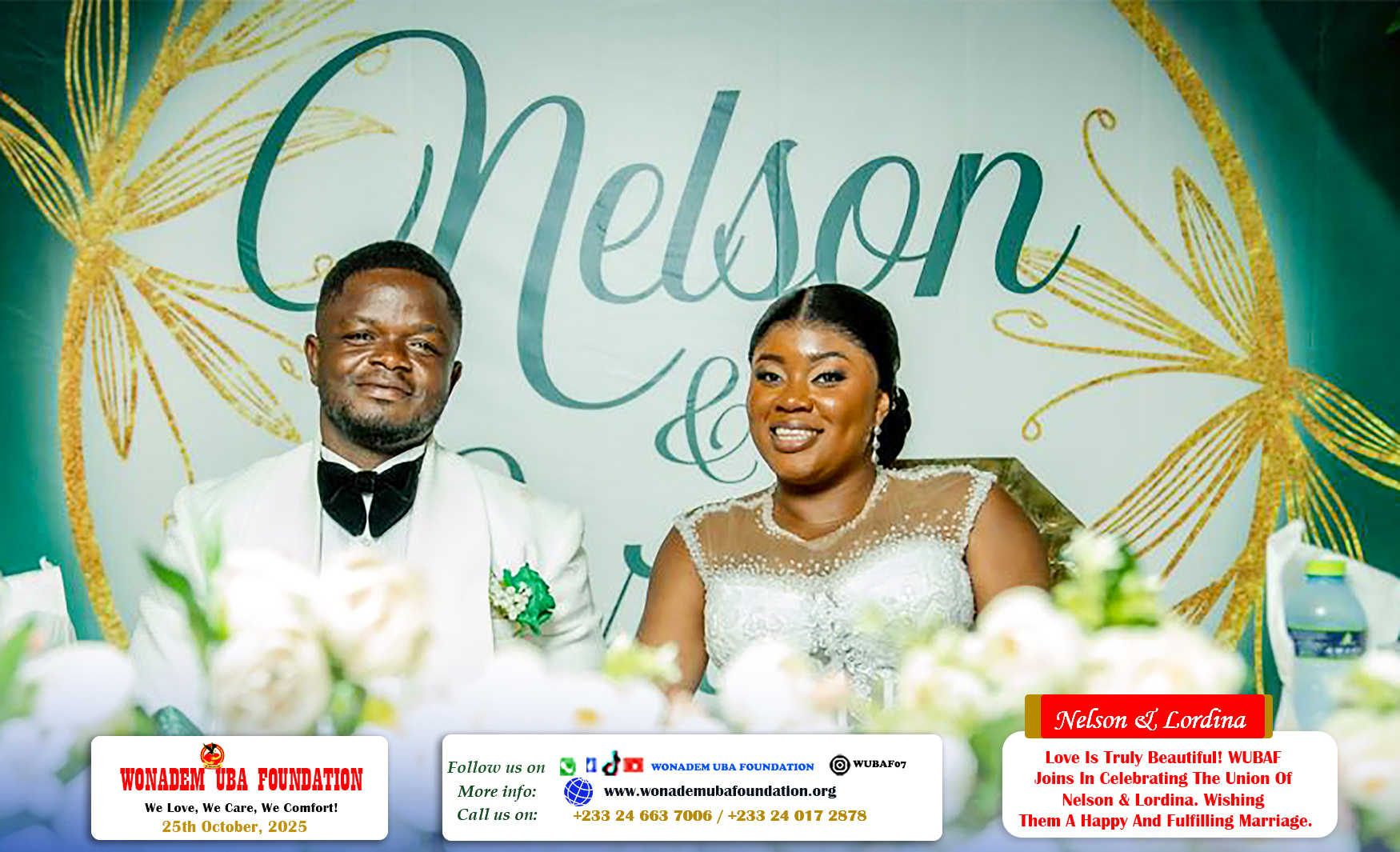To Nelson and Lordina, the SIR UBA EMPIRE, WUBAF Executives, and the entire membership of Wonadem UBA Foundation wish you a lifetime of love, laughter, happiness, adventure, and unwavering support for each other. Congratulations, Nelson and Lordina! ❤❤❤