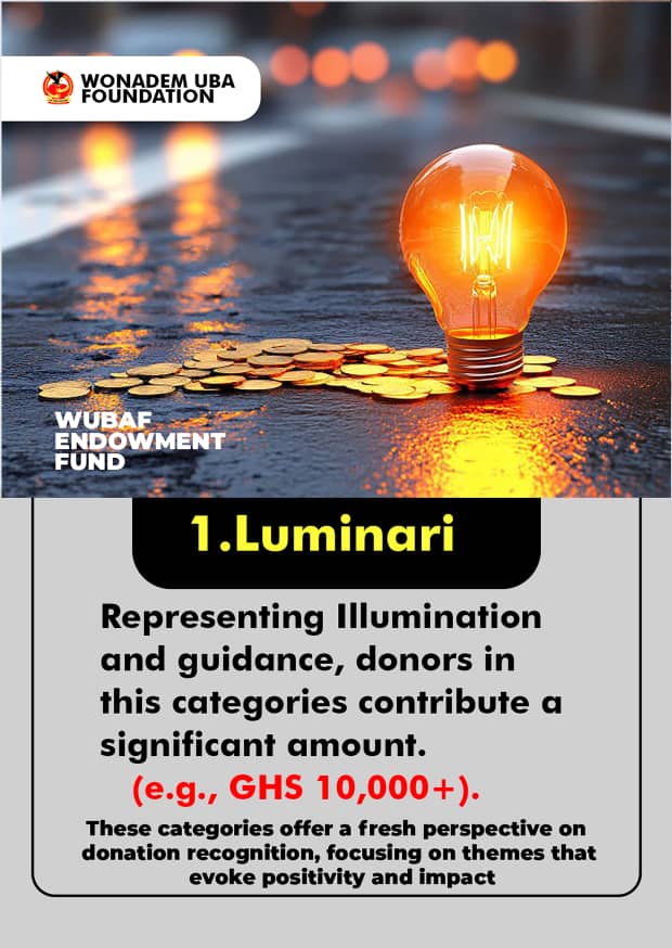 Luminaria: Representing illumination and guidance, and donors in this category contribute a significant amount ( GHS10,000.00+).