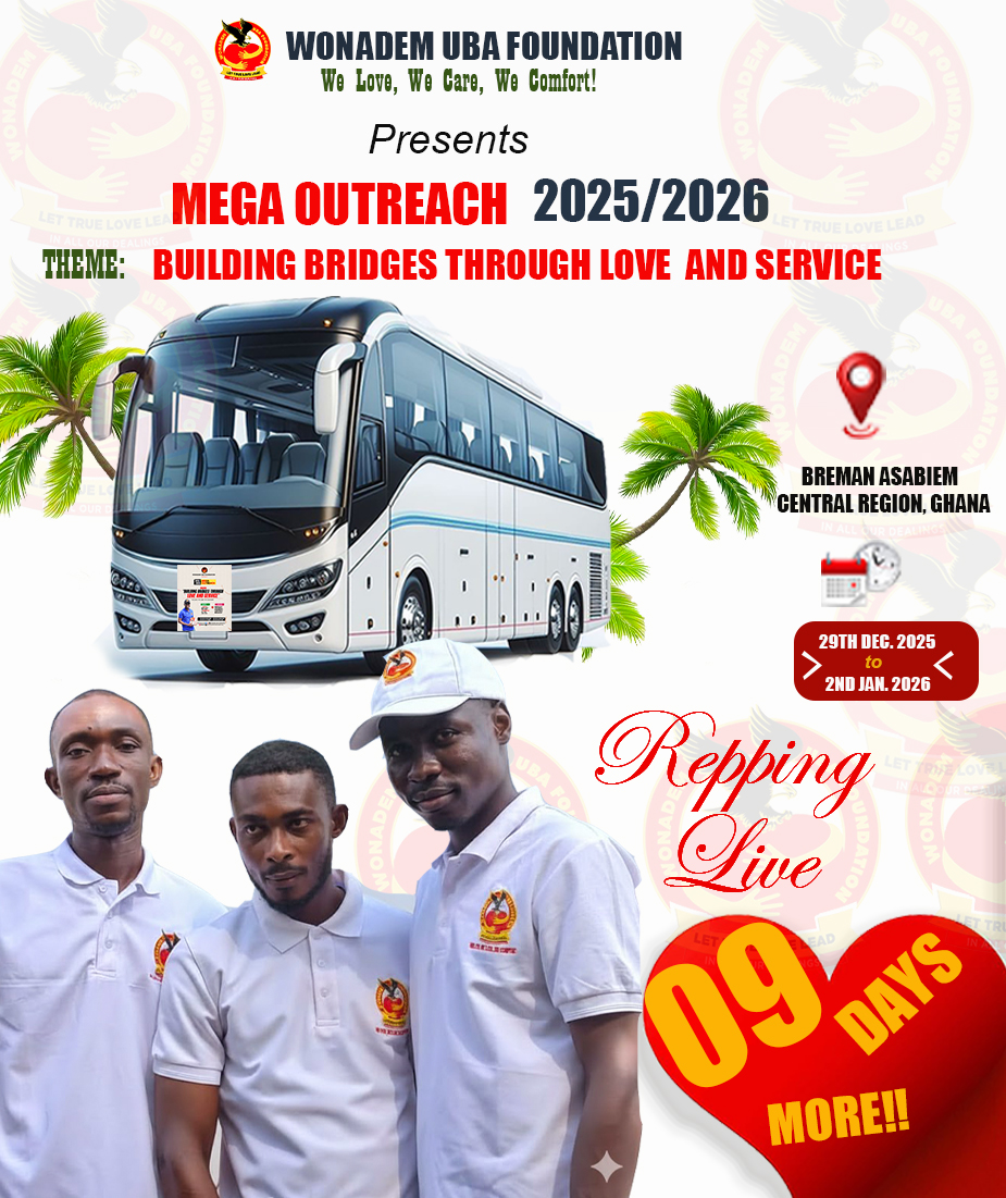 The Wonadem UBA Foundation is hosting an outreach program, "Building Bridges Through Love and Service," from Dec 29, 2025, to Jan 2, 2026, in Breman Asabiem, a rural community in Ghana's Central Region. The program aims to provide essential services, promote social cohesion, and demonstrate love and care through initiatives in education, healthcare, community development, and skill training.