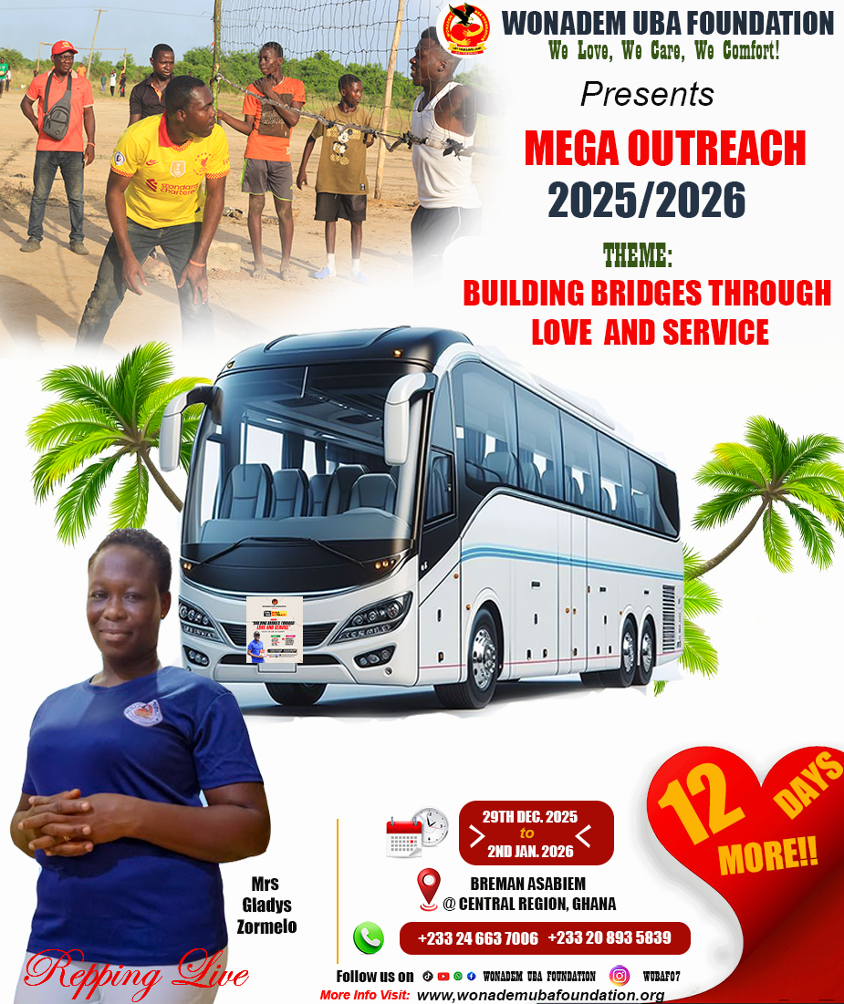 The Wonadem UBA Foundation is hosting an outreach program, "Building Bridges Through Love and Service," from Dec 29, 2025, to Jan 2, 2026, in Breman Asabiem, a rural community in Ghana's Central Region. The program aims to provide essential services, promote social cohesion, and demonstrate love and care through initiatives in education, healthcare, community development, and skill training.