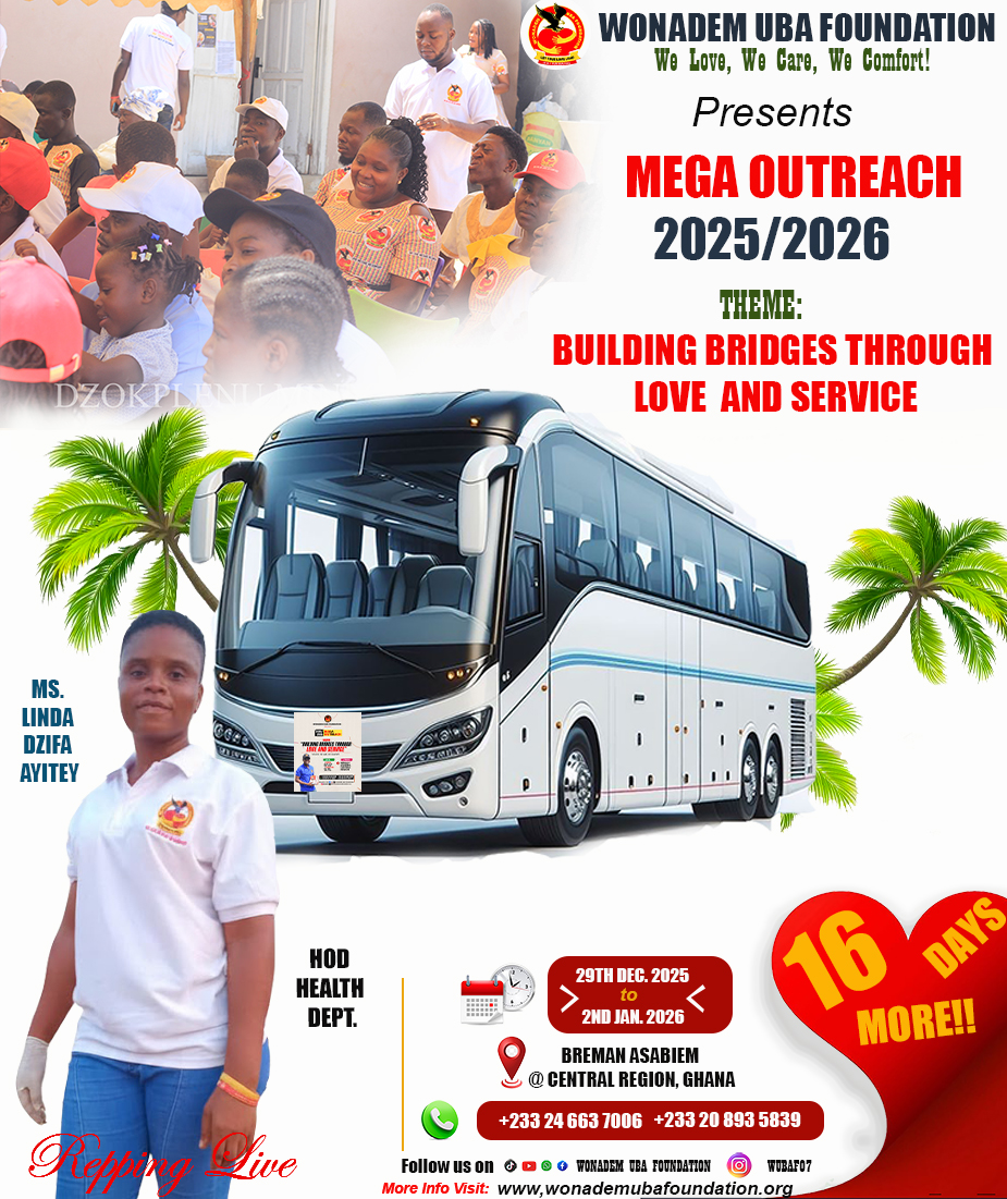 The Wonadem UBA Foundation is hosting an outreach program, "Building Bridges Through Love and Service," from Dec 29, 2025, to Jan 2, 2026, in Breman Asabiem, a rural community in Ghana's Central Region. The program aims to provide essential services, promote social cohesion, and demonstrate love and care through initiatives in education, healthcare, community development, and skill training.