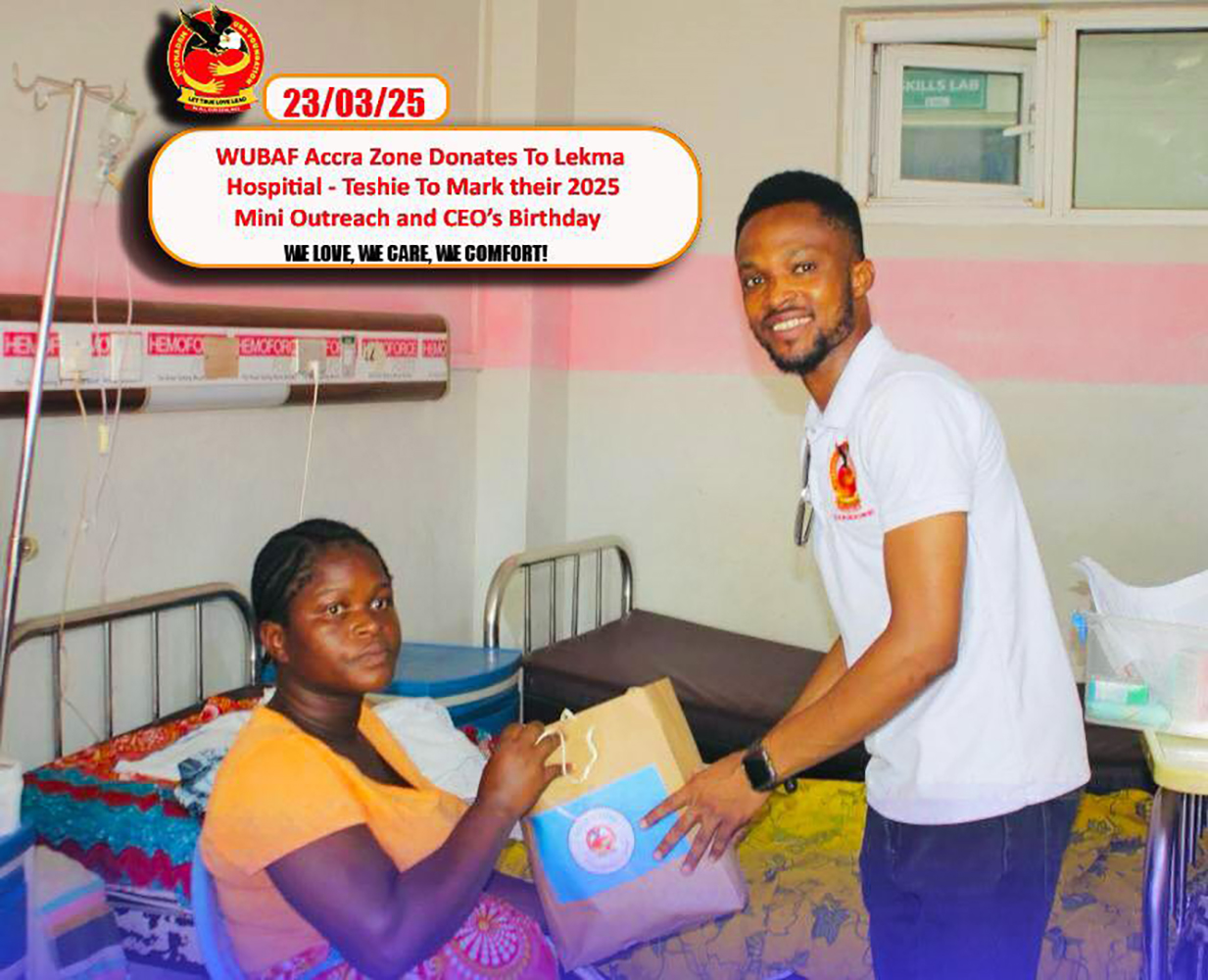 The donation embodies WUBAF's values of love, care, and comfort, highlighting the organization's dedication to improving the lives of others. Lekma Hospital - Teshie, a key healthcare provider in the Greater Accra Region, will utilize the donated items to enhance patient care and services.